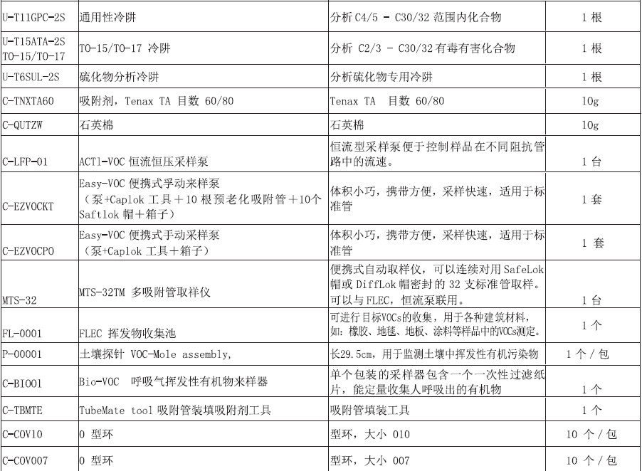 | U-T9TNX-2S | 填充 Tenax TA 的冷阱,目標化合物范圍n-C6 到 n-C32 |
