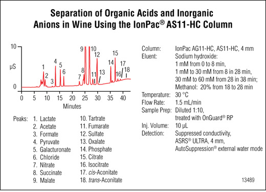 Separation of organic acids and inorganic anions in wine using the Dionex