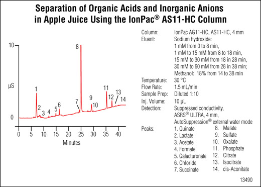 Determination of organic acids and inorganic anions using the Dionex IonPac